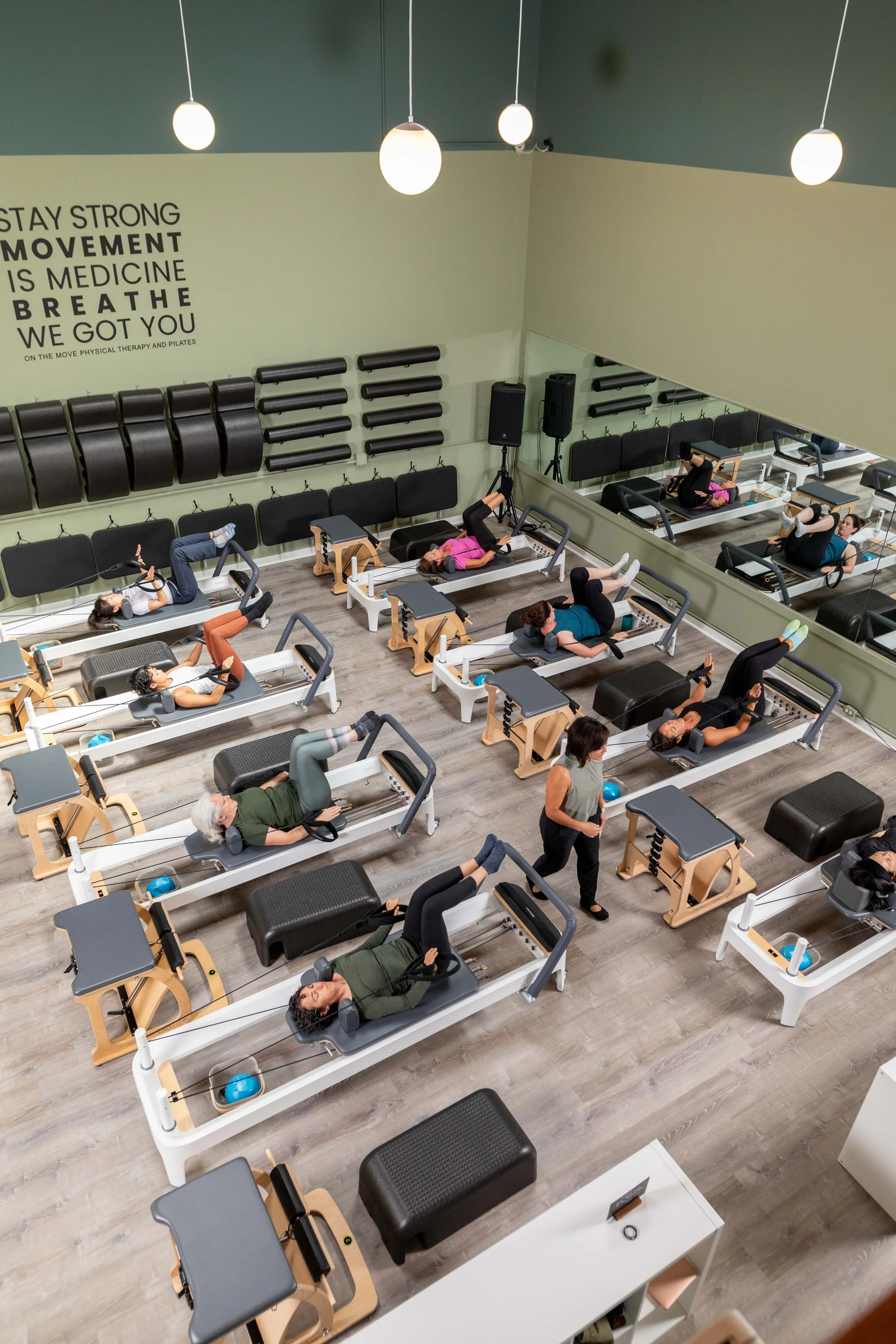 On the Move's Clinical Pilates classes are led by Doctors of Physical Therapy. Small groups, individualized attention, equipment-supported movement. A safe, supervised next step for patients at any stage.