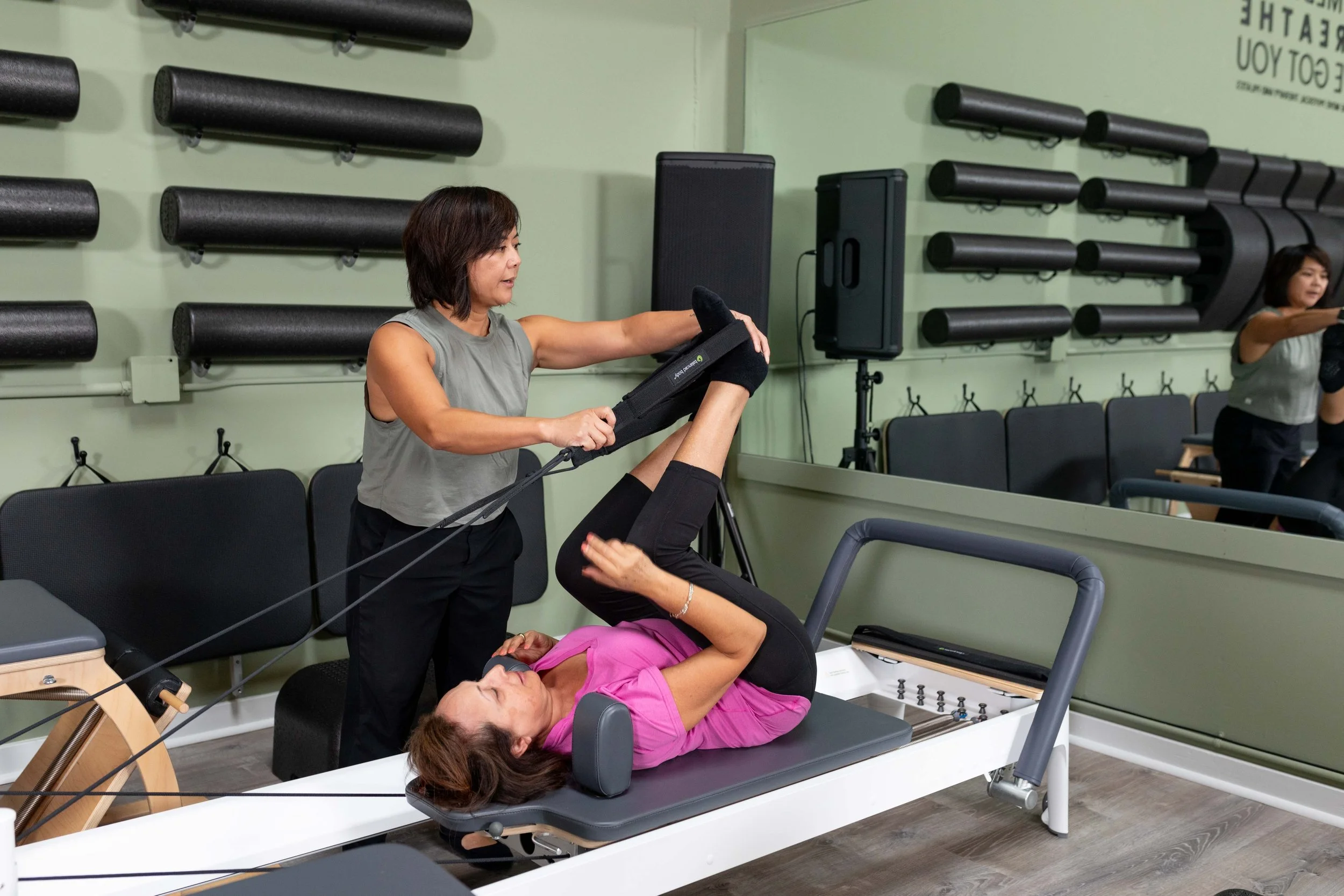 Before joining a group class, patients attend a complimentary 30-minute Pilates Basics Intro. They meet the instructor, learn the equipment, and try a few exercises. It's a warm, welcoming first step that sets them up for a great experience in class.